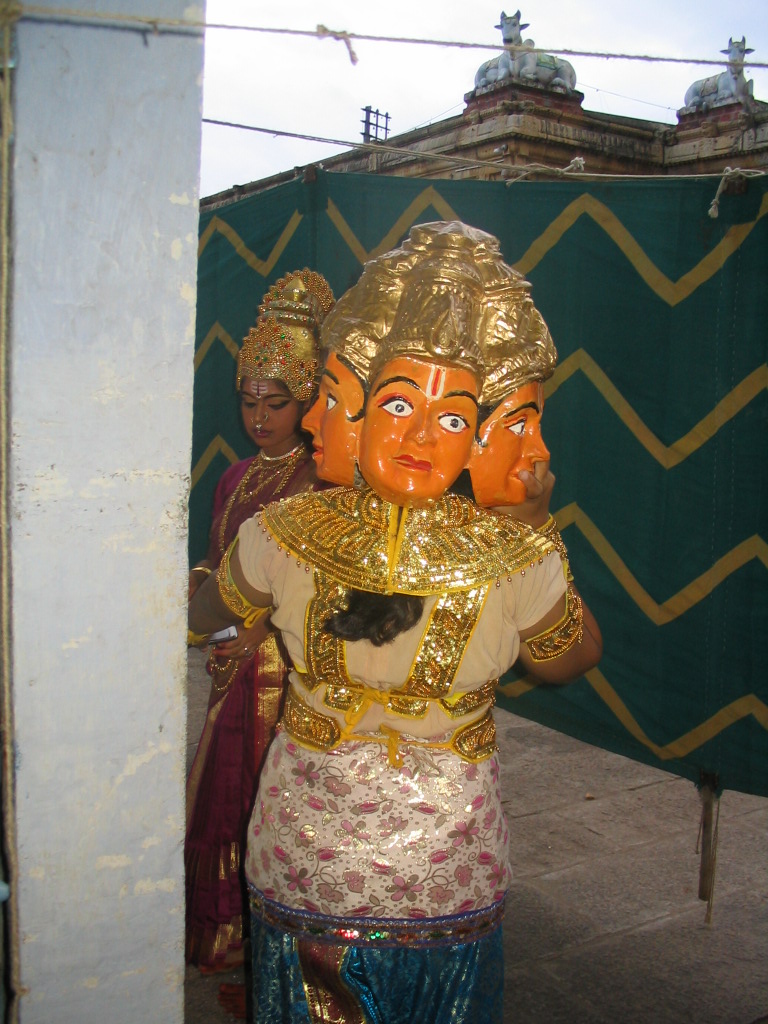 Reminds me of a Kathakali performance I was in and had the chance to go back stage. This guy was stuffing his insides with red ribbon and I could’nt understand why.. untill I saw them perform and it was the scene where Bheema kills dhuryodhana and wears his intestine aroung his neck and smears draupadi’s hair with the blood!!! Was awsome!!