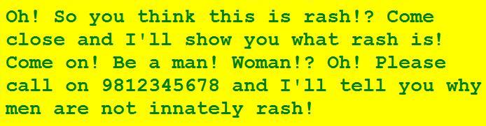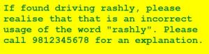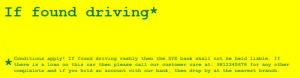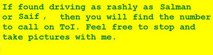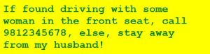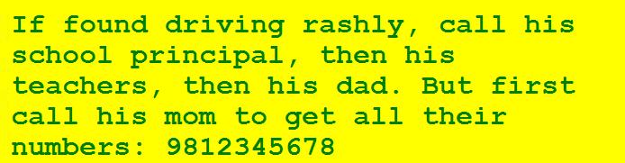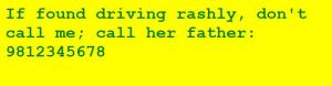 If found driving rashly, please call 9812345678.