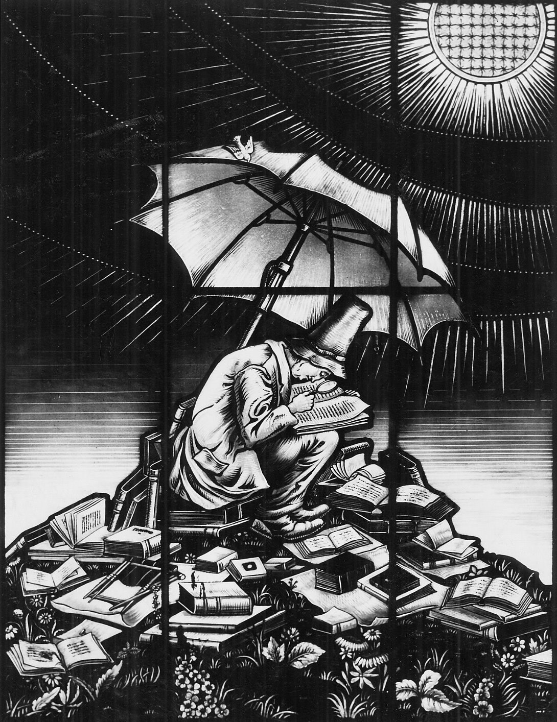 And we’d go on and on about that one paragraph, pausing not for the hurried urgencies of practical life where hours run into one another demanding five dozen minutes’ worth of distance run and no second spared for the panting heart. Oh! how we pant while life goes by waiting not to admire the outline of dust on a cover which reveals a smaller book’s shadow when they were all stacked one on another! How it takes more time to pick the smaller tome, in order to ensure that clean skin, untouched by wafting dirt, a clean rectangle surrounded by evenly powder brown track! Ever noticed that the inner rectangle is usually not parallel to the outer boundaries of the larger book? An accidental design which one can miss while one stops not to pant.